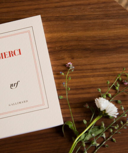 Nous appuyant sur un savoir-faire centenaire en matière de fabrication et de choix des papiers, nous avons accordé le plus grand soin à la conception de chaque référence. Toutes les couvertures sont imprimées sur du papier Tintoretto 200 g/m², teinté dans la masse, spécialement pour les Éditions Gallimard par Fedrigoni (maison fondée en 1888). Chaque modèle selon son usage et son format a des caractéristiques spécifiques, qui le dissocient volontairement du livre : verso de la couverture imprimé en rouge, rabats, dos carré collé cousu au fil de lin rouge, reliure couture Singer.