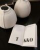 Couverture papier Tintoretto 200 g/m&2sup; fabriqué spécialement par Fedrigoni, reliure dos carré collé cousue au fil blanc. Couverture « Blanche » à rabats, impression rouge au verso. Papier intérieur Schleipen Fly 90 g/m&2sup;.