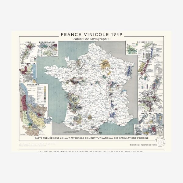 Cette carte, issue des trésors de -et en co-édition avec- la Bibliothèque nationale de France, a été publiée en 1949, sous le haut patronage de l’Institut National des Appellations d’Origine.